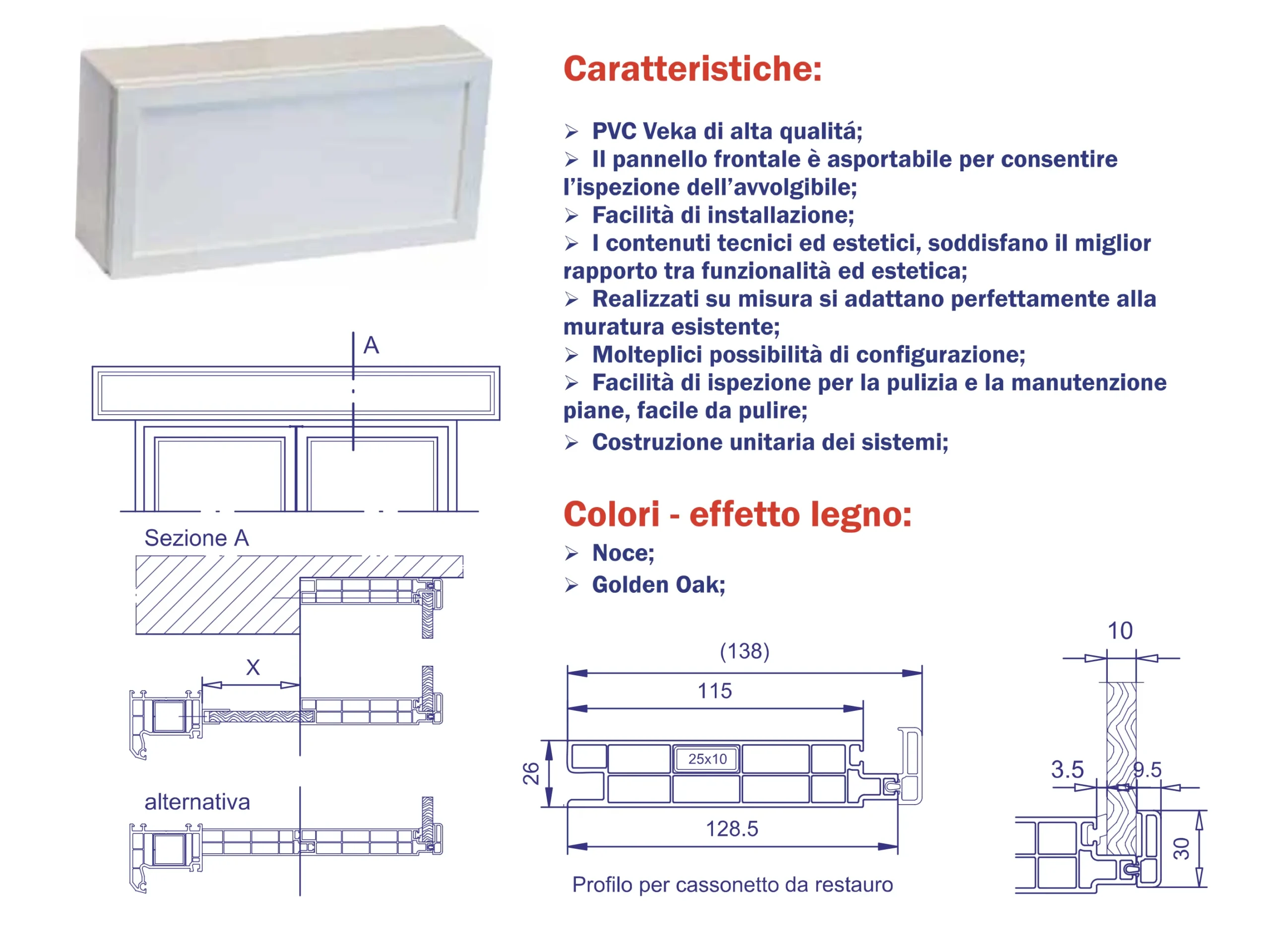 Disponibili in un’ampia varietà di colori, finiture ed effetti (anche effetto legno), i cassonetti in PVC possono essere abbinati con precisione agli infissi esistenti o a nuove installazioni. Ogni elemento è personalizzabile per adattarsi allo stile della casa, dalla più moderna alla più tradizionale.